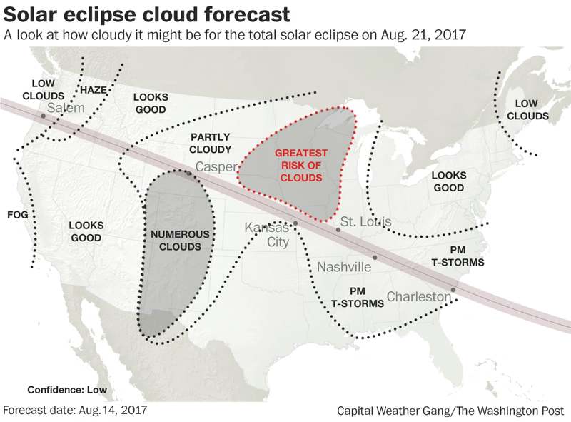There's a fourth plan. We are heading today for a campground in Western Kentucky near Paducah. It may be possible that we could squat there for a whole week. The camp site is in the totality zone. The weather forecast there for next Monday is much better than in Kansas.